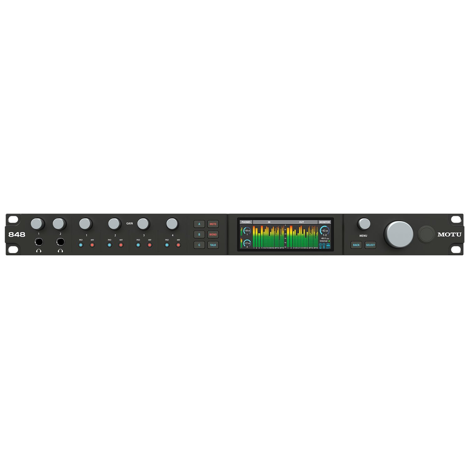 Toplamda 28 giriş ve 32 çıkış sunan MOTU 848, dört yüksek performanslı mikrofon preamfisi dahil olmak üzere bolca analog ve dijital bağlantı seçeneğiyle dikkat çeker. Cihazın dahili 64 girişli / 32 otobüslü dijital mikseri, dahili DSP efektleri, patchbay ve yönlendirme ızgarası sayesinde esnek sinyal yönlendirme, gelişmiş monitörleme özellikleri, iki adet 8-kanallı optik giriş/çıkış, bağımsız iki kulaklık çıkışı ve modüler synth’ler için DC bağlantılı çıkışlarıyla benzersiz bir kontrol merkezi sunar.