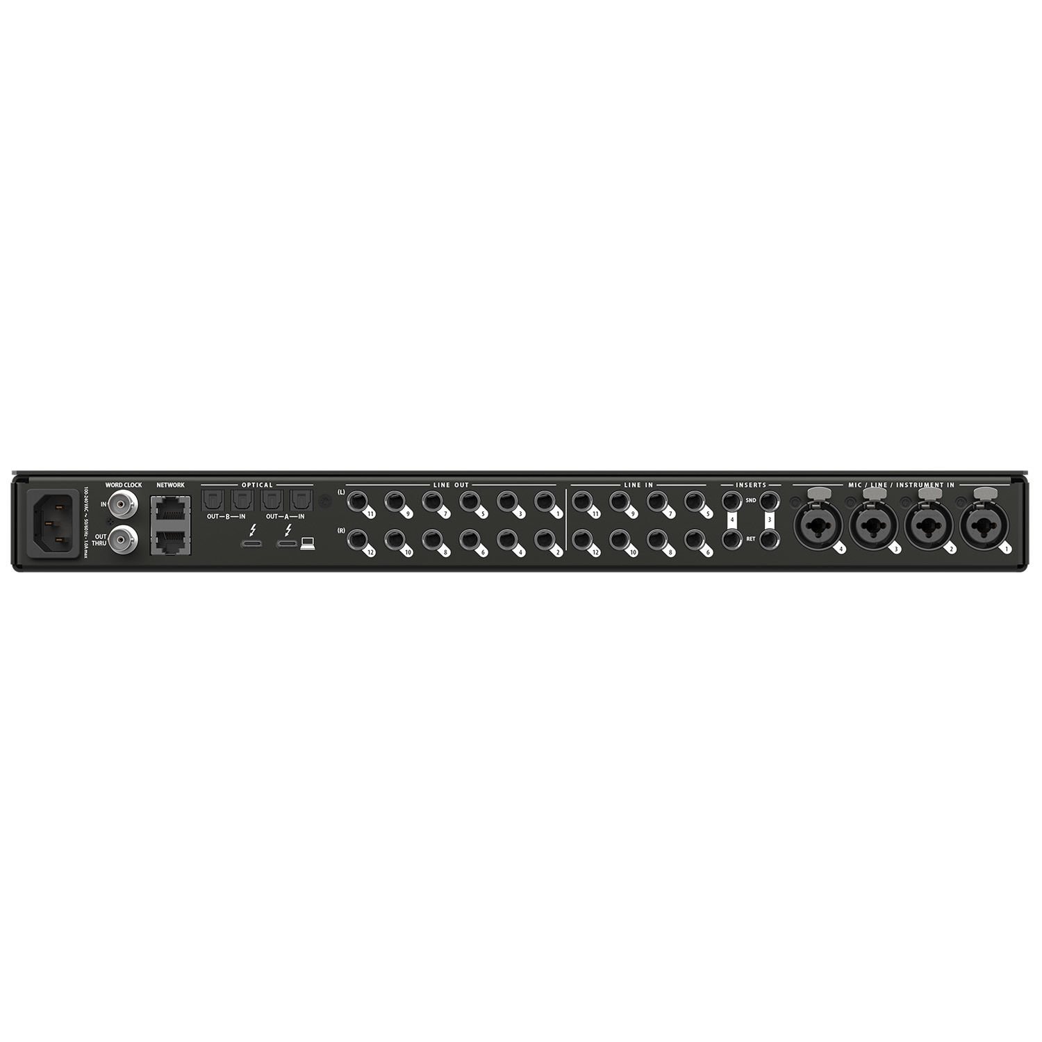 Mikrofon girişleri -114dB THD+N, 118dB dinamik aralık ve -129 dBu EIN değerleriyle dünya standartlarında analog performans sunar. 40 Gbps’lik USB-C bağlantısı; Thunderbolt 3 ve 4, USB4, USB3 ve USB2 ile tam uyumludur. Bu bağlantı ile 128 adede kadar çift yönlü ses kanalına ulaşmak mümkündür.