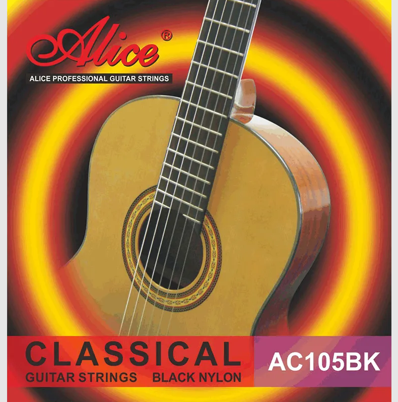 Alice AC105BK-H Klasik Gitar Tel Seti - Siyah Naylon (Tasarım Seri - Hard Tension) | Siyah Naylon Tizler, Sıcak ve Dolgun Tını, Kararmaya Karşı Dayanıklı | Ölçü: 4/4 Klasik Gitarlar İçin (6'lı Tam Takım Set)