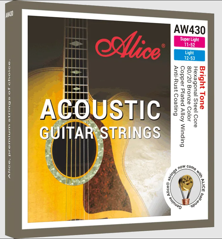 Ürün Açıklaması: Alice AW430-SL, akustik gitarın doğal volümünü ve parlaklığını maksimize etmek için %80 bakır ve %20 çinko alaşımıyla üretilmiştir. Bu özel karışım, tellerin ilk takıldığı andan itibaren kristal netliğinde tizler ve tanımlı, sıkı baslar vermesini sağlar. 11-52 Super Light ölçüsü, parmaklar üzerinde düşük bir baskı yaratarak uzun süreli performanslarda konforlu bir çalım sunar. Gelişmiş sarım teknolojisi sayesinde tellerin üzerindeki gerilim dengelidir ve bu da entonasyon kararlılığını artırır. Hem stüdyo kayıtları hem de canlı performanslar için akustik gitarın sesini "parlatmak" isteyen müzisyenlerin bir numaralı tercihidir.