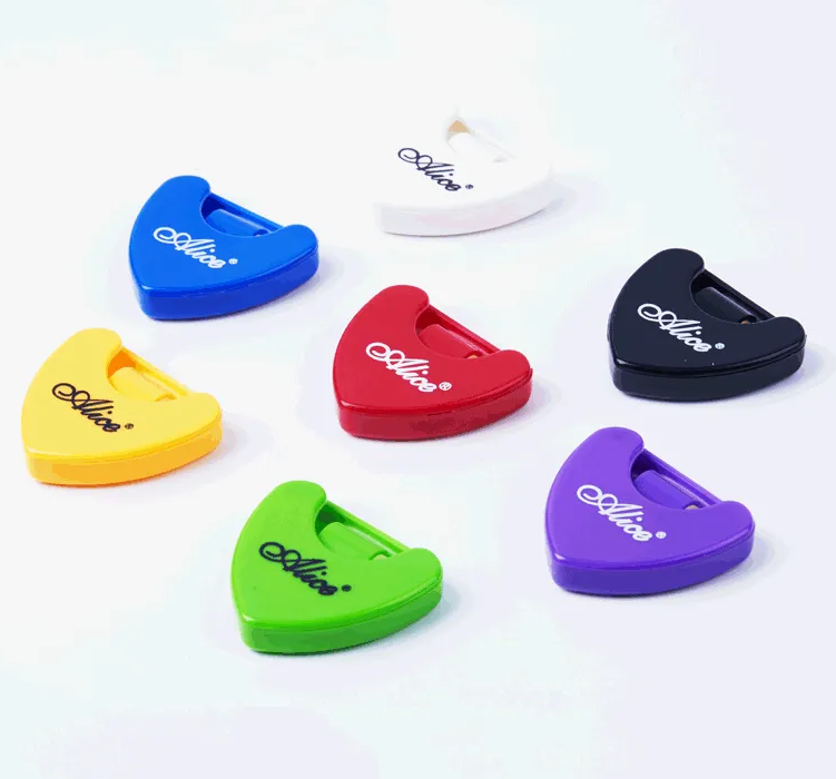 Ürün Açıklaması: Alice A010A-G, gitarın gövdesine veya kafa (headstock) kısmına saniyeler içinde yapıştırılabilen yaylı bir pena kutusudur. İçerisinde bulunan yaylı mekanizma, penaları yukarı doğru iter; böylece en üstteki penayı hızlıca alabilir ve yerine yenisini kolayca yerleştirebilirsiniz. Arka yüzeyindeki özel yapışkan tabaka, gitar cilasına zarar vermeden güçlü bir tutuş sağlar ve istendiğinde iz bırakmadan çıkarılabilir. Özellikle sahnede pena düşüren gitaristler için hayat kurtarıcı bir yedek deposu görevi görür. Kompakt ve ergonomik yapısıyla gitarınızın estetiğini bozmadan size maksimum fonksiyonellik sunar.