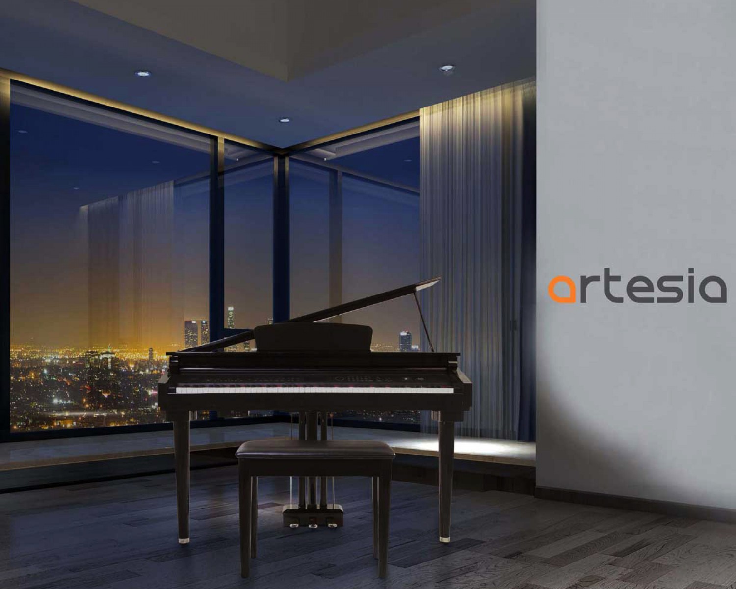 Parlak Abanoz Siyahı Kabin Artesia AG-30, her oda boyutuna veya ev dekoruna rahatça uyum sağlayan sofistike bir Kuyruklu Piyano kabinine sahiptir. Özenle cilalanmış abanoz siyahı parlak kaplaması derin, zengin bir parlaklık verir. Kapak paneli, panel kontrollerinin tamamen gizlenebileceği şekilde tasarlanmış olup, enstrümana akustik bir kuyruklu piyano görünümü vermektedir. | Klavye | Ses Akustik enstrümanlardan kaydedilen Artesia, akustik Supra Sound örnekleme işleme ile 3 katmanlı ve 3 boyutlu örnekleme sunar. | Bağlantı AG-30, Akıllı Telefonlar, Tabletler ve Dizüstü Bilgisayarlar dahil tüm USB cihazlarınıza bağlantı sağlayan iki USB Bağlantı Noktası dahil olmak üzere çeşitli bağlantı seçenekleri sunar. |