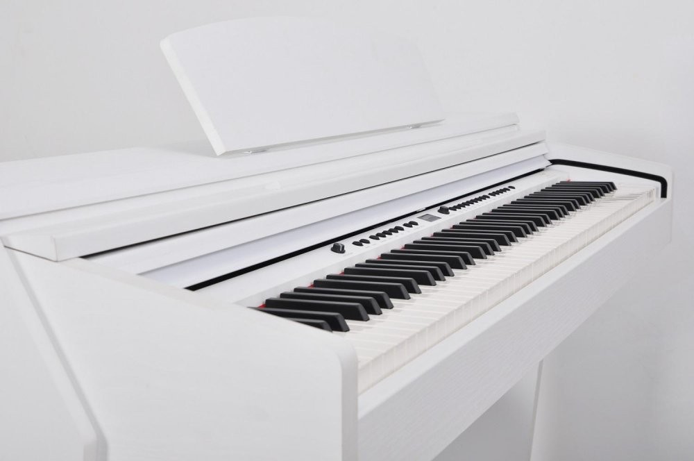 Artesia DP-3, bulunduğu her ortamı süsleyen harika görünümlü mat beyaz ve zarif tasarımıyla gelmektedir. Tuş muhafazası, çalınmadığı zamanlarda tuşları tozdan ve darbelerden korur. Ahşap görünümlü taburesi, nota kitapları ve diğer aksesuarları saklamak için oturma yerinin altında bölüm içerir.
