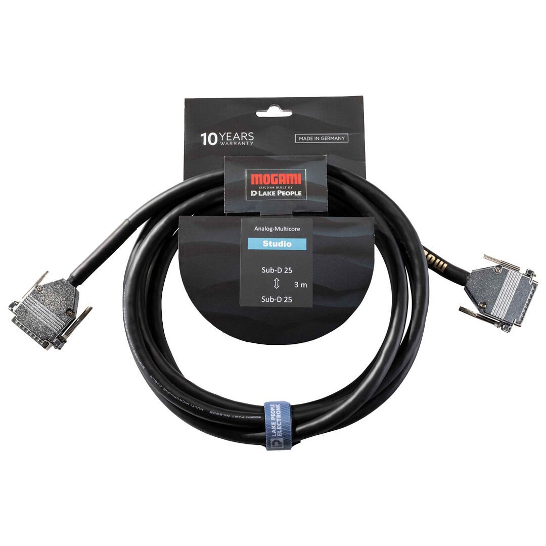 D-Sub 25 pimli <> D-Sub 25 pimli, krom kaplama muhafaza, altın kaplama kontaklar. Mogami 2932 Neglex Çok Çiftli Analog Kablo, siyah
