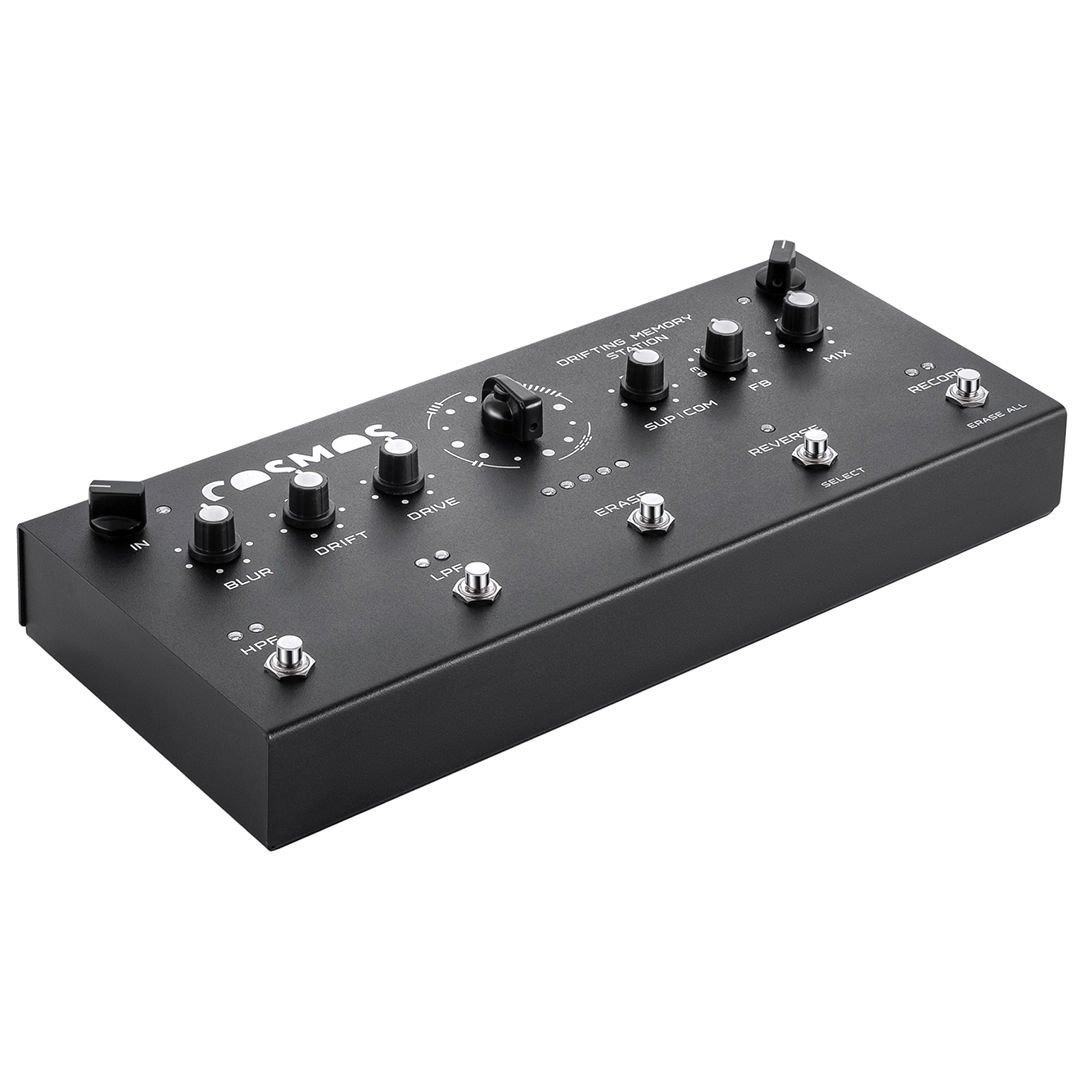 İşlevsel bir bakış açısıyla COSMOS, kaydedilen seslerin sürekli olarak yeniden birleştirildiği ve kendiliğinden sürekli değişen bir ses manzarası oluşturduğu geniş bir ses belleği dizisidir. Bu, büyük asal sayılar arasındaki ilişkilere dayanan matematiksel bir kaydırma (tüm gecikme çizgilerinin boyutu farklı asal sayılardır), LFO'nun eşzamansız çalışması ve yavaşça değişen kaotik bir sinyalle modülasyon olmak üzere üç yolla elde edilir. Sonuç olarak, bir looper'da olduğu gibi çeşitli seslerin sonsuz katmanlanmasına ve işlenmesine izin verir, ancak müdahaleci, tekrarlayan bir döngü olmadan.COSMOS, ambient müzik için mükemmel, zengin, akıcı ve gelişen ses manzaraları üretir. COSMOS'u kullanarak, spontane bir akış içindeyken ve stüdyoda hazırlanmış sekanslar, arka plan parçaları ve "burada ve şimdi" nin bir yansıması olamayacak diğer şeyleri kullanmadan tüm bir meditatif solo konser çalabilirsiniz.Drifting Memory Station