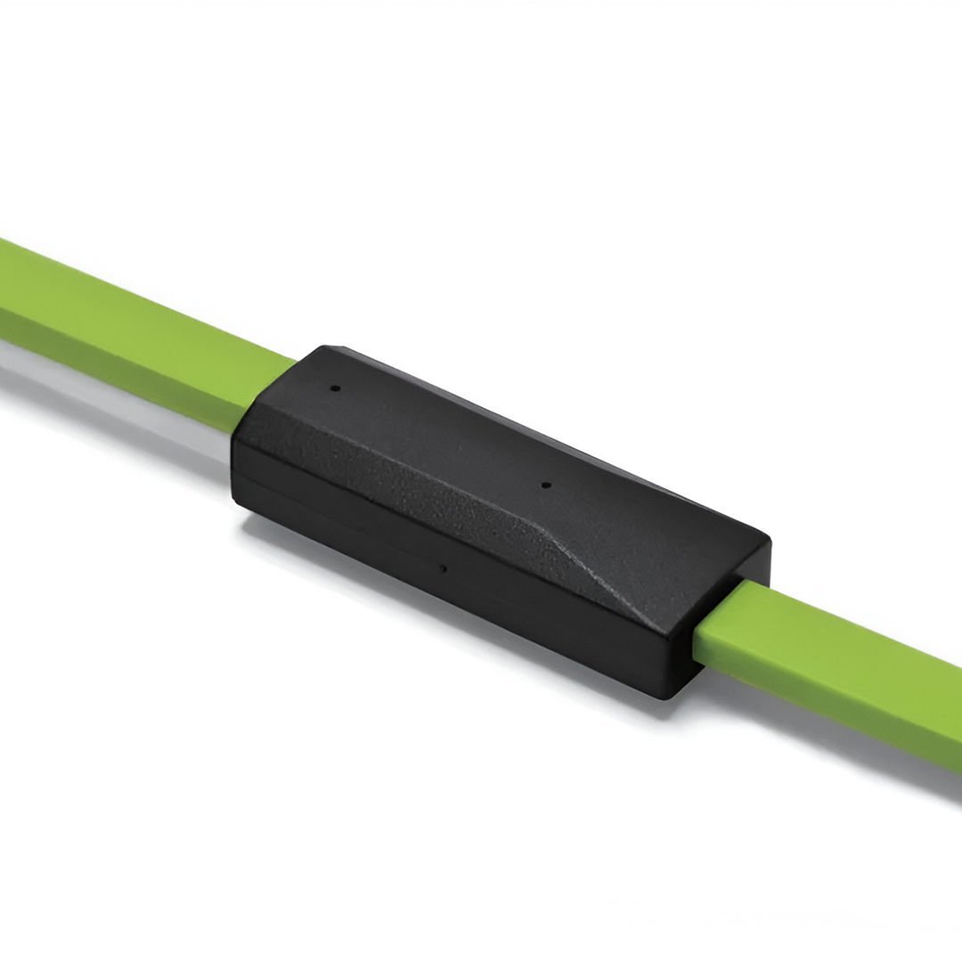 Yeni açı tasarımlı 3,5 mm stereo mini fiş, bir cihazın yan yüzeyine düzgün ve alandan tasarruf sağlayan bağlantı sağlar. Buna ek olarak, iletkeni kalın bir bölge tutmasına rağmen kablonun küçük yüzeyiyle alana dokunarak, yer titreşiminin olumsuz etkilerinden korur.