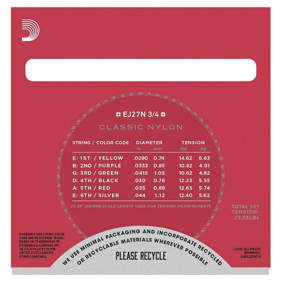D'Addario EJ27N 3/4 Student Nylon - Fractional Size Strings