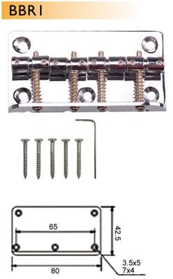 Valencia BBR1CR Bas Gitar Köprüsü Krom (Dr. Parts) | 4 Telli - 80mm - Vintage Tip
