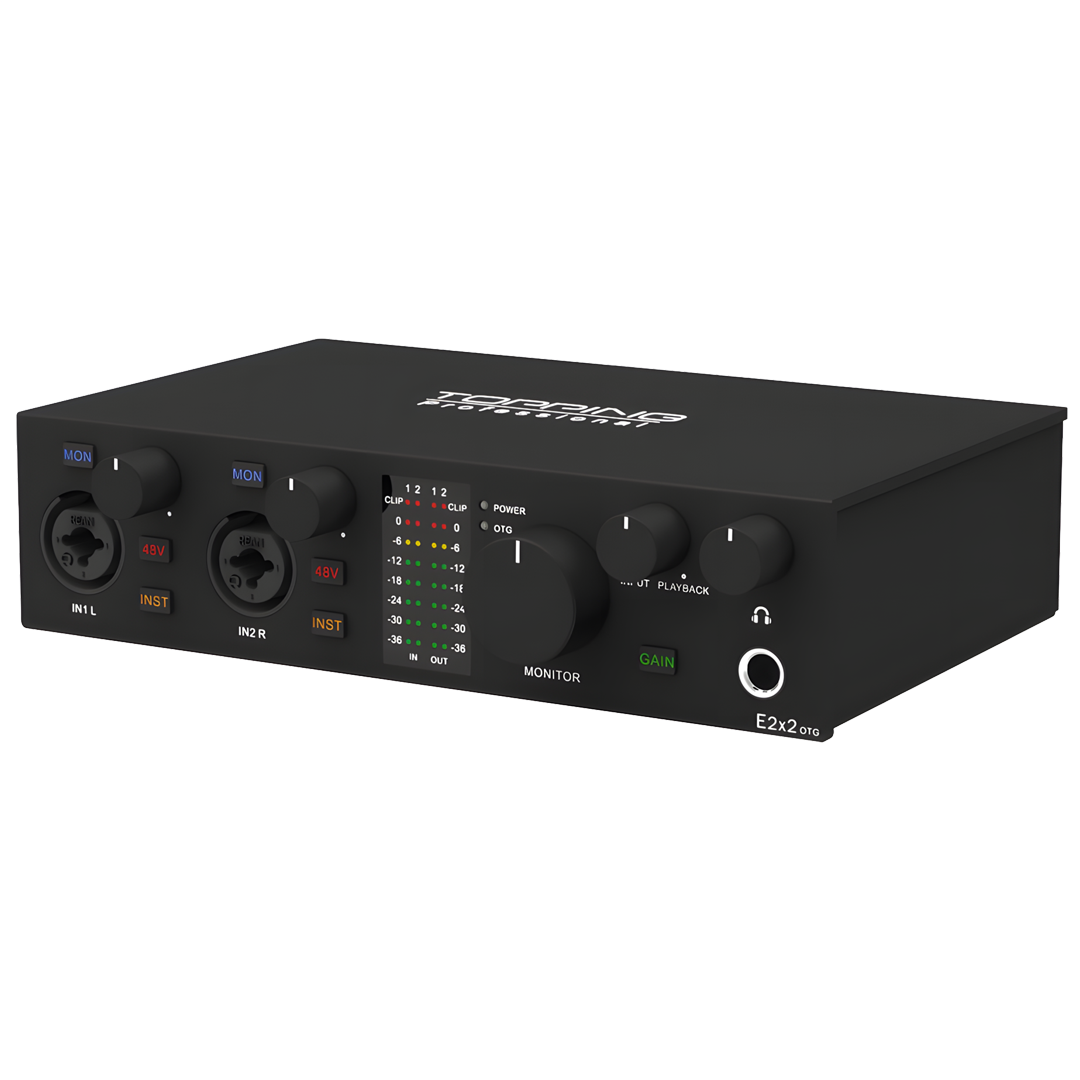TOPPING PROFESSIONAL 05 0003 E2X2 OTG SES KARTI - SİYAH (PROFESYONEL - USB SES ARABİRİMİ) | MOBİL OTG DESTEĞİ, SAĞLAM METAL ŞASİ, ULTRA DÜŞÜK GÜRÜLTÜLÜ PREAMP KATI | ÖLÇÜLER: 188 X 132 X 45 MM