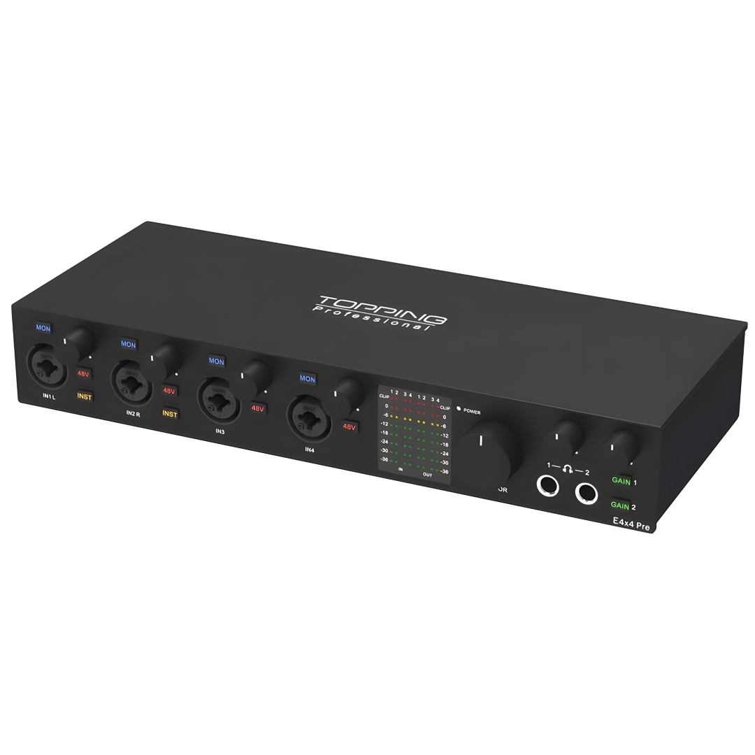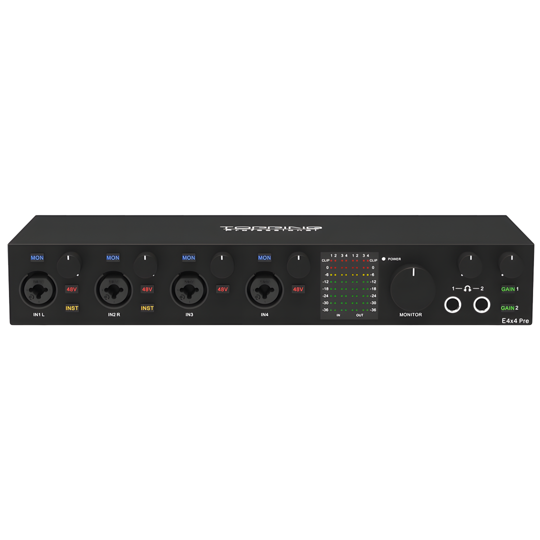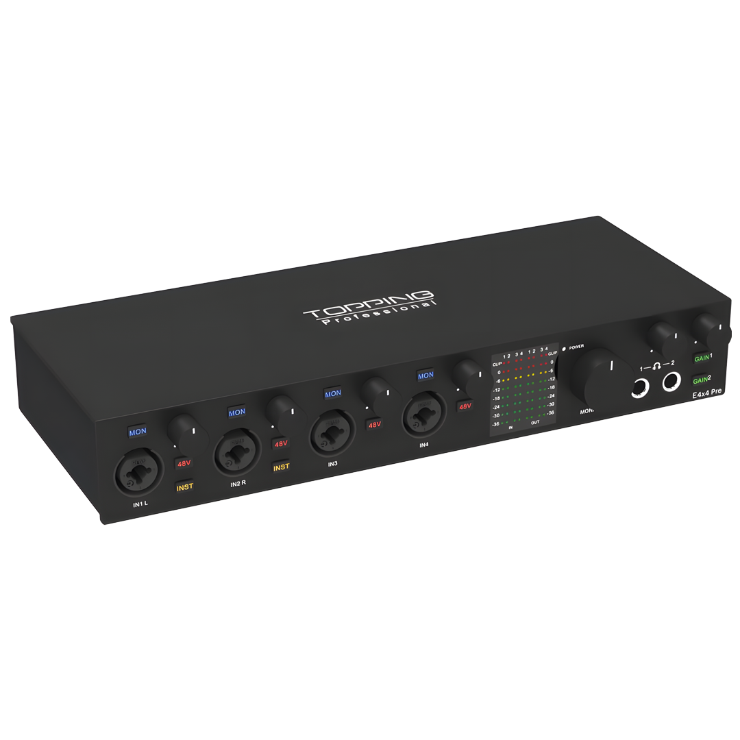 Topping, E4x4 PRE ilemüzisyenler ve ses profesyonelleri için tasarlanmış mükemmel bir ses arayüzü sunuyor. Bu mükemmel arayüz, sorunsuz kayıt ve oynatma için çok yüksek bir performans seviyesi sunar.