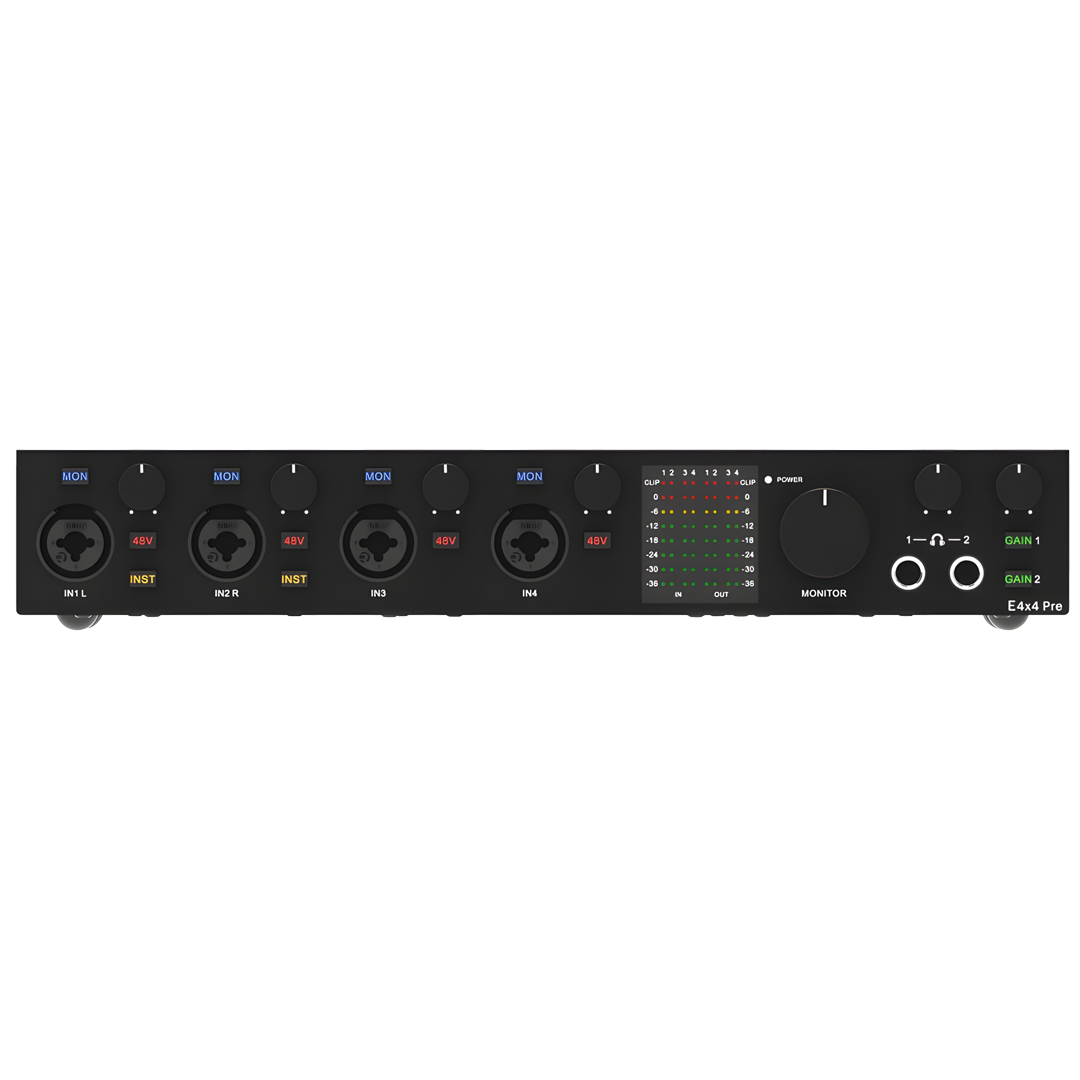Dört adet 12 kanallı giriş mikseri ile donatılmış olan E4x4 PRE, ses efektlerinin kolayca ayarlanmasını ve kontrol edilmesini sağlar. Dahası, 8 DAW kanalı ve 6 LoopBack kanalı farklı kayıt, miks ve playback ihtiyaçlarına uyum sağlayacak şekilde tasarlanmıştır.