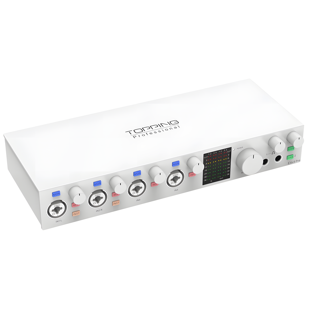 Topping Professional E4X4 Pre | WhiteYüksek Kalite USB-C Ses Kartı: 4-Giriş/4-Çıkış 24Bit/192kHz, 8...600ohm arası kulaklıklara kadar kullanılabilir. (PC/MAC)