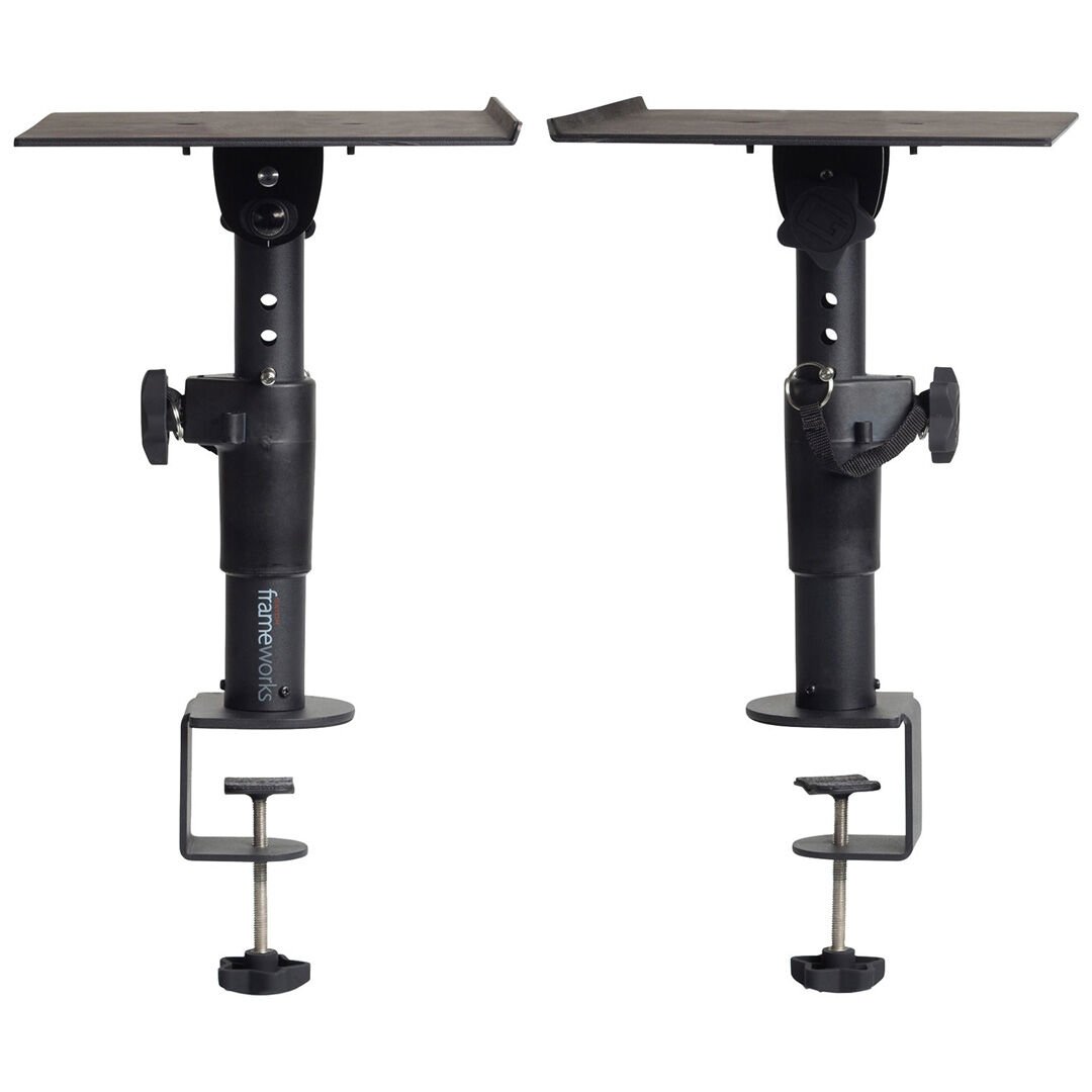 Küçük proje stüdyoları, yayın ortamları veya mobil uygulamalar için tasarlanan Frameworks Desktop Studio Monitor Clamp-On Stand çifti, küçük stüdyo monitörlerini bir masaüstüne monte etmek ve optimum bir dinleme ortamı oluşturmaya yardımcı olmak için idealdir.