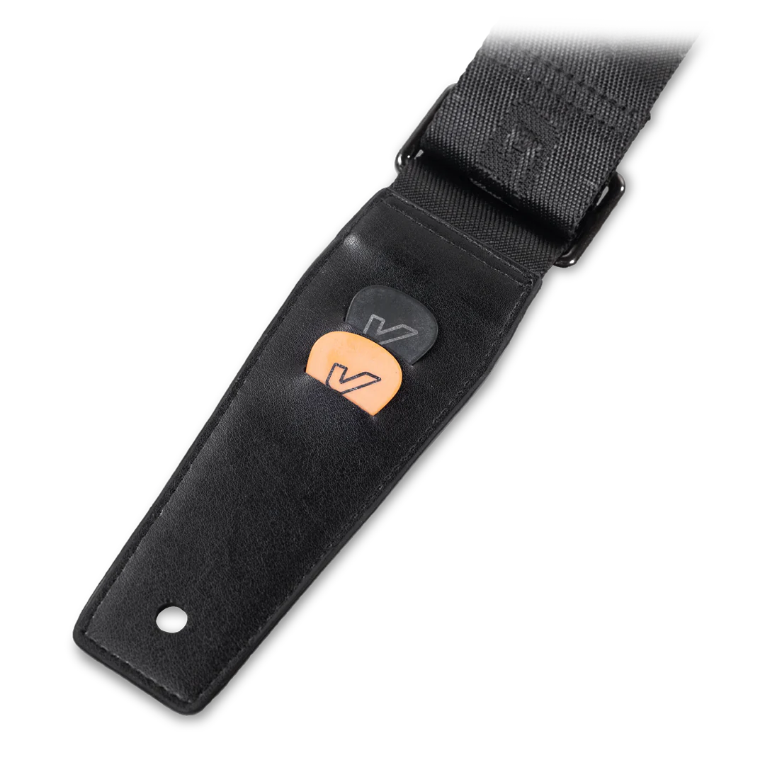 Siyah-krom metal donanım şık görünümü tamamlıyor ve ön ucun arkasındaki yerleşik yuvalar gitar penalarınızı/mızraplarınızı tutmanızı kolaylaştırıyor.