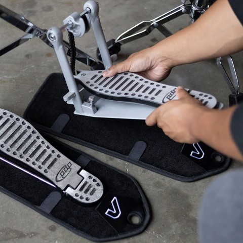 "Single pedal" kurulumu, bas/kick davul ve pedal için gerekli matı ve hi-hat pedalınız için ayrı bir mat sağlar.