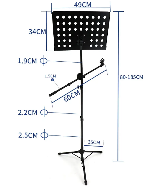 Hybrid Design | Music & Mic Stand Combo | Perforated Metal Plate | 105-185cm Height