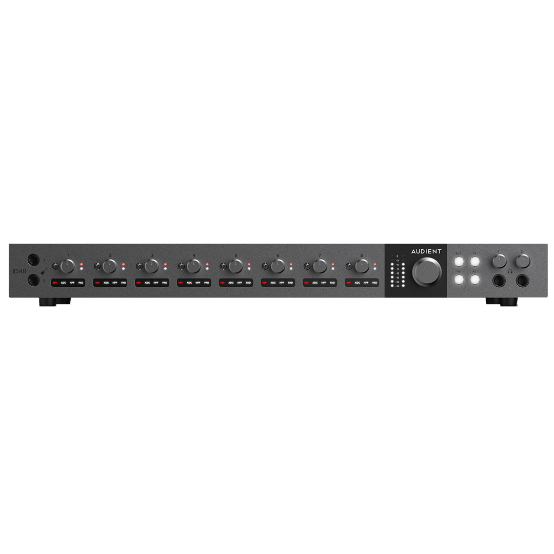 Audient iD48Yüksek Kalite USB-C Ses Kartı: 24-bit/96kHz Çözünürlük, 24-giriş/32-çıkış, 8x Class-A Audient Konsol Mikrofon Preamp, 2x JFET Enstrüman Girişi, 16 kanallı ADAT I/O, 2 Dahili DSP Mikser ve Kulaklık Çıkışı ile 8...600ohm arası kulaklıklara kadar kullanılabilir | Mac & Windows Uyumlu