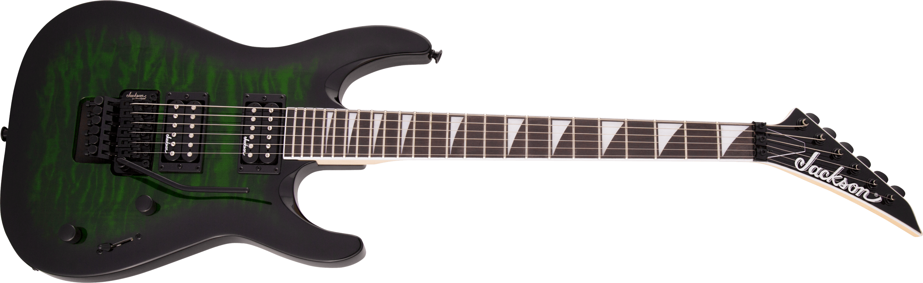 Seramik mıknatıslı çift Jackson yüksek çıkışlı humbucking manyetikler, her türlü hard rock veya heavy metal tarzına mükemmel uyum sağlayan sıcak ve sert bir ton sunar. Üç yollu anahtarlama ve tek ses ve ton kontrolü ile tonu tercihinize göre ayarlayın ve Jackson markalı Floyd Rose® lisanslı çift kilitli köprü sayesinde dinamik tremolo hareketi ve akort stabilitesiyle dilediğinizce çalın.