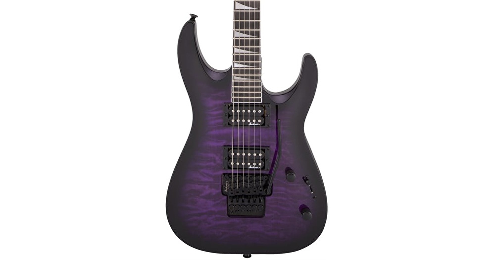 Öne Çıkan Özellikler: JS32Q Dinky Arch Top, şeffaf Purple Burst kaplaması altındaki Kapitone Akçaağaç (Quilt Maple) üst yüzeyiyle büyüleyici bir görünüme sahiptir. Gövde içinden geçen tel yapısına (string-through) sahip sabit köprüsü, tel titreşimini doğrudan ağaca aktararak devasa bir sustain ve sarsılmaz akort kararlılığı sağlar. Jackson High-Output seramik humbuckerlar, bu zengin rezonansı yüksek gain seviyelerinde dahi netlikle amfiye iletir. 24 perdeli amaranth klavyesi ve kemerli gövde yapısı ile teknik çalımı zirveye taşır.