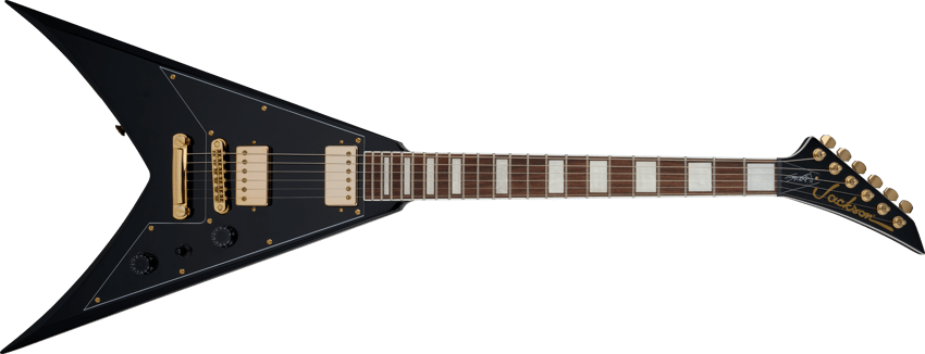 Jackson Scott Ian King V KVXT Laurel Klavye Gold HW Gloss Black Elektro Gitar
