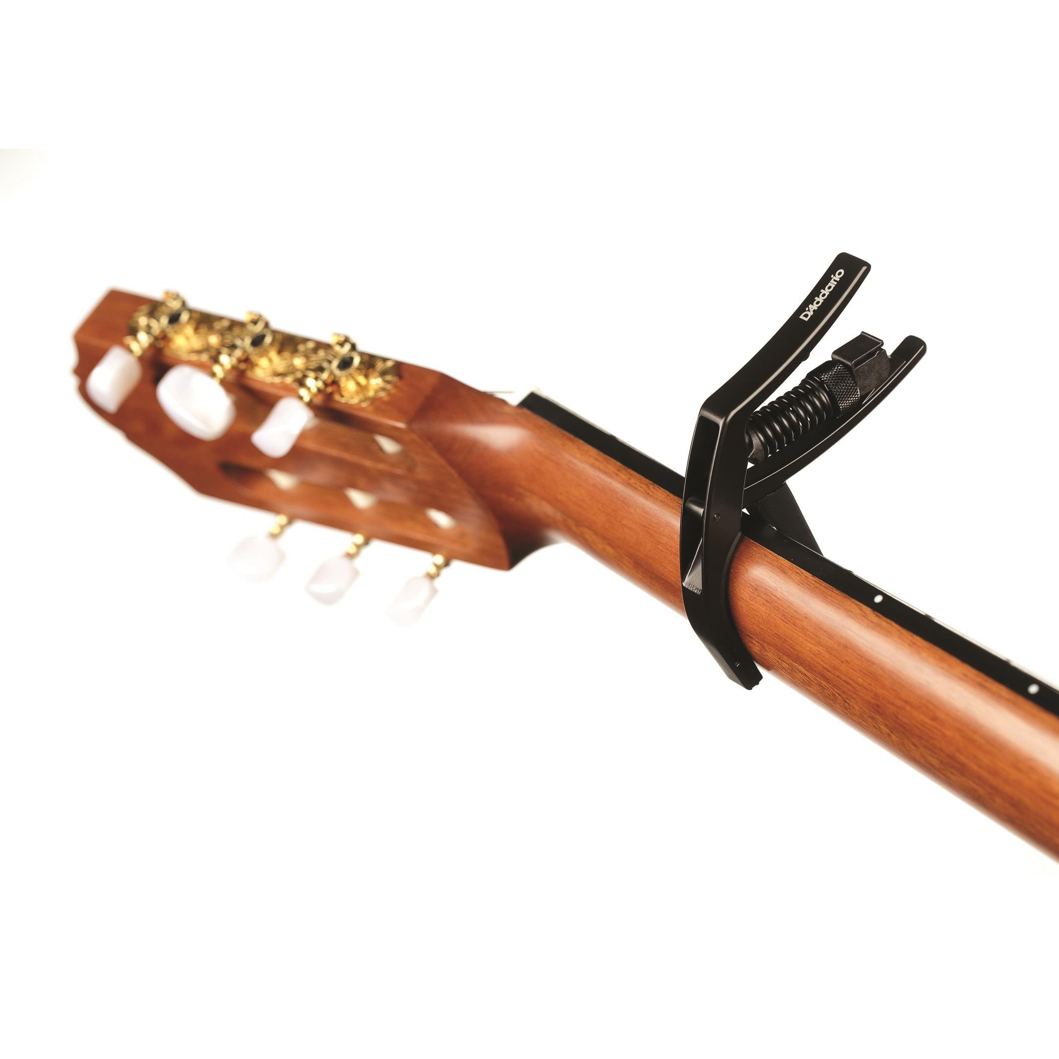Hızlı kullanım sunan mandal (trigger) tipi mekanizması ile sahne performanslarında tek elle pozisyon değiştirmenize imkan tanır. Klasik gitarın düz sap yapısı için özel olarak düzleştirilmiş baskı yüzeyi, tüm tellerde eşit gerginlik sağlar. Dayanıklı alüminyum gövdesi uzun yıllar formunu korur.