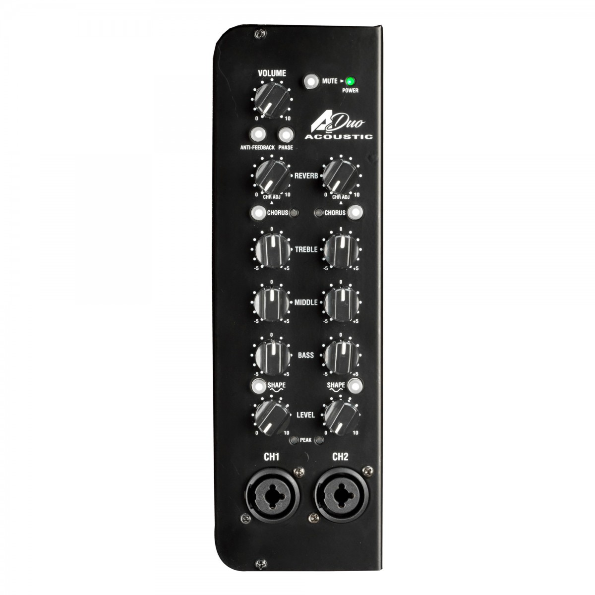 A-DUO, iki adet birbirinden bağımsız kanalla gelir. Bu iki kanal da XLR veya jack bağlantılara sahip olup 3-bant EQ ve tek bir butonla aktive edebileceğiniz "Shape" kontrolü ile gelir. Bu esneklik ile mikrofon ve enstrüman bağlantısına imkan verilmesi amaçlanmıştır. Ayrıca iki farklı akustik enstrüman veya aynı enstrüman üzerinden mikrofon ve manyetik bağlantılarına imkan verir. Aux In girişi ile de canlı performanslarınızda altyapıları harici bir müzik çalar veya ses kaynağından A-DUO üzerine gönderebilirsiniz.