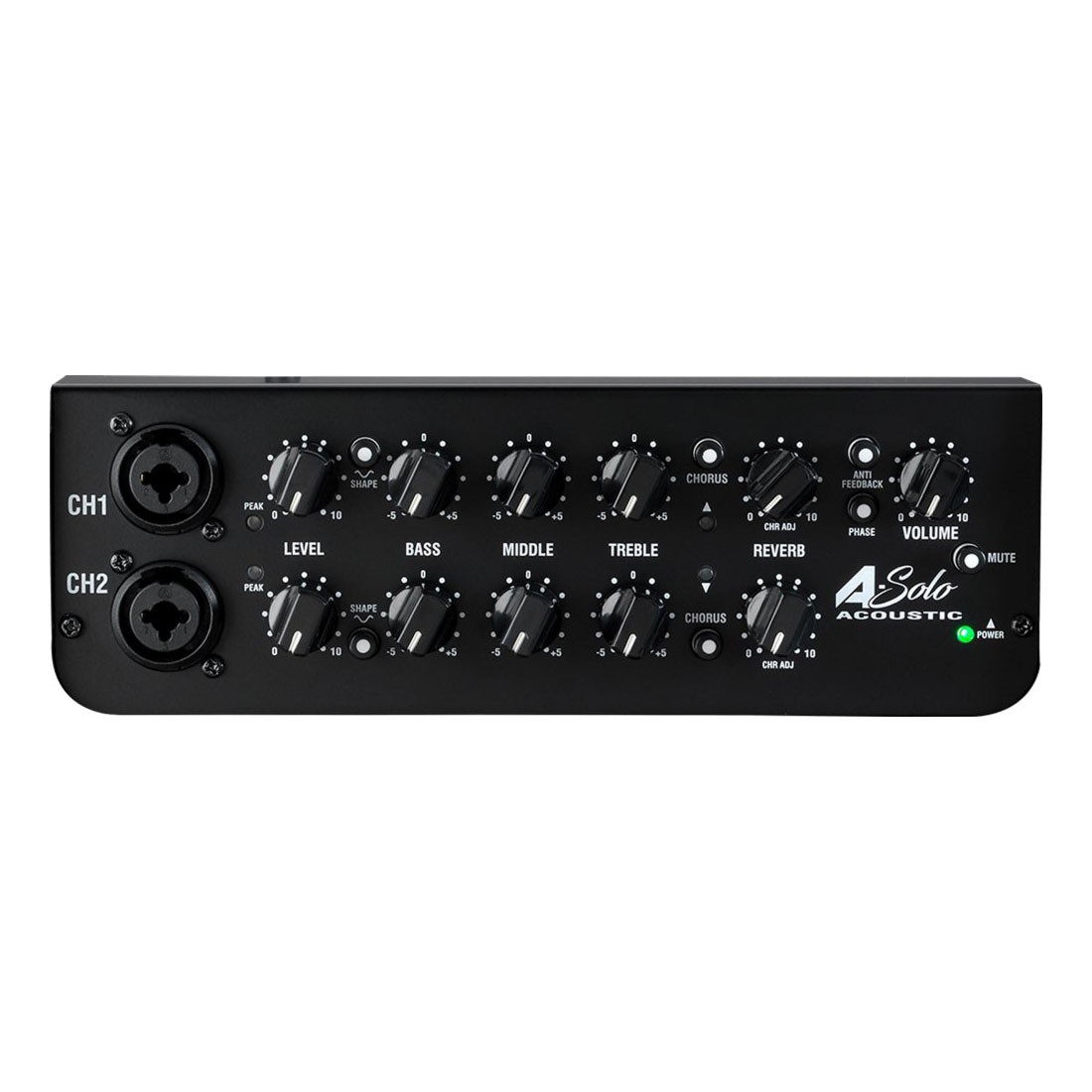 A-Solo, ihtiyacınız olan her yerde temiz ve net bir akustik gitar tonu sunmaya adanmış profesyonel, kompakt ve taşınabilir bir akustik gitar amfisidir. Stüdyoda ya da sahnede canlı olsun, A-SOLO her seferinde ynı kaliteyi sunar. A-Solo'nun tamamen bağımsız iki kanalı vardır. Bir mikrofon ve bir enstrümanın, iki farklı akustik enstrümanın veya hatta aynı enstrümandan ayrı mikrofon ve manyetik bağlantılarının bir karışımının bağlanmasına izin verecek kadar esnektir.