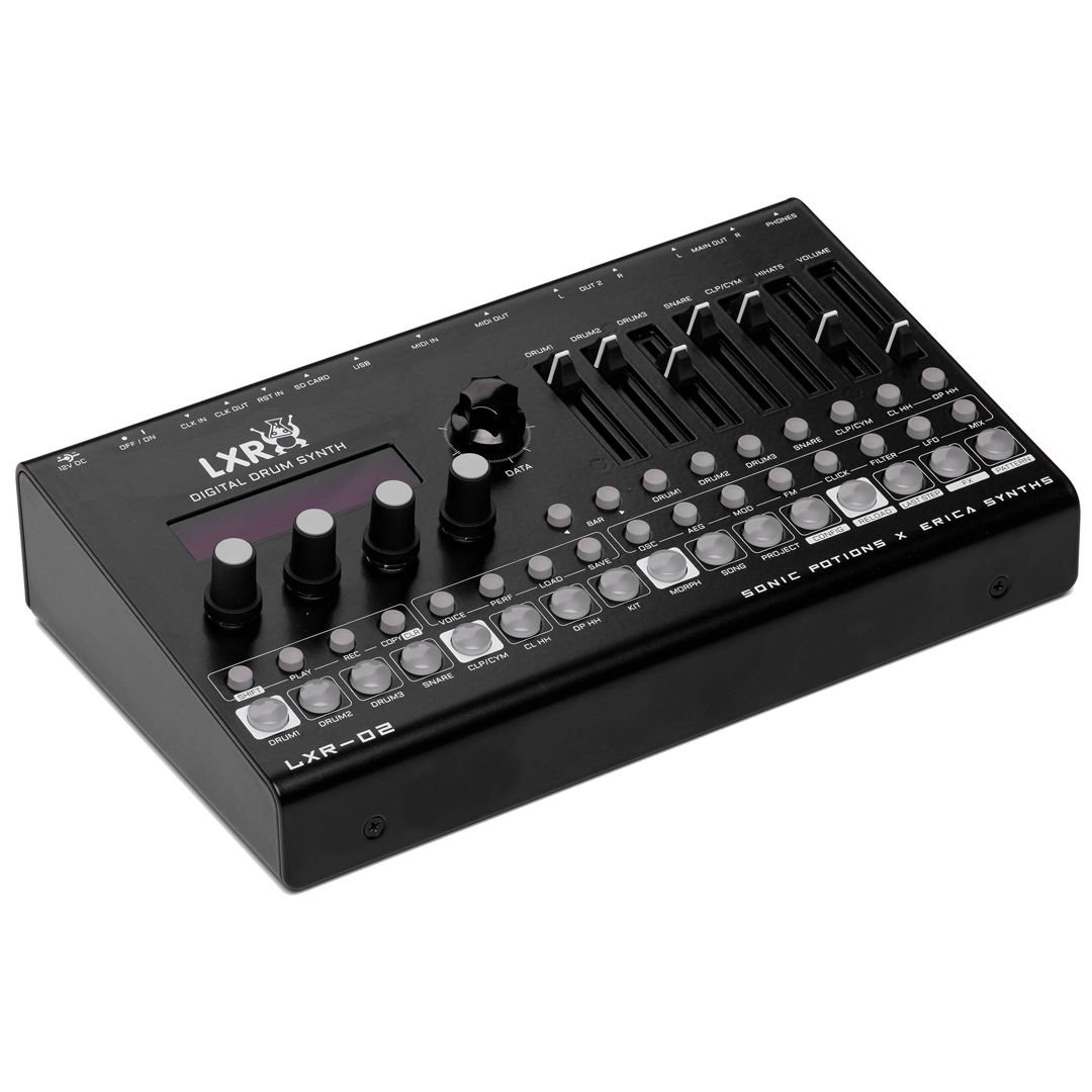 İki şirket - Sonic Potions ve Erica Synths, kitlelerden ayrı duracak bir davul makinesi geliştirmek için çabalarını birleştirdi ve LXR-02 doğdu. LXR, entegre bir sequencer'a sahip tam teşekküllü bir dijital davul makinesidir. Ses motoru, her biri ayarlanabilecek 30'dan fazla parametreye sahip 6 farklı enstrüman sağlayarak klasik analog emülasyonlardan gevrek dijital kargaşaya kadar sesler üretir, böylece bir davul sentezleyicide bulunan en kapsamlı ses tasarım yeteneklerinden bazılarını sunar. Kompakt, dayanıklı tasarımı ve net kullanıcı arayüzü, onu canlı konserler için ideal kılar.