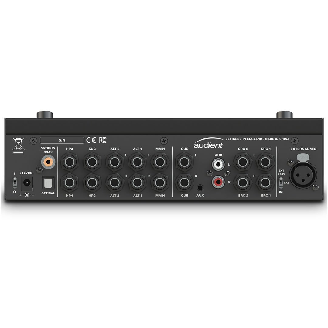 Desktop Monitör Kontrolör: 2 Stereo Line-Level Girişi, 1 Cue Mix Girişi; 2 Aux Girişi; Optik ve Koaksiyel S/PDIF Girişi; 3 Stereo Hoparlör Çıkışı; 1 Alt Çıkış; 4 Kulaklık Çıkışı; Dahili Mikrofonlu Talkback; ve Dim, Cut, Mono ve Polarit Kontrol