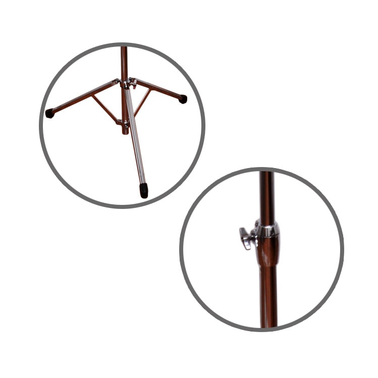Nota sehpası, profesyonel kullanım için tasarlanmış olup, ceviz ağacından üretilen çerçeve yapısıyla estetik bir görünüm sunmaktadır. Bu ürün, dayanıklı kalın metal malzemelerle desteklenmiş olup, rüzgar, sarsıntı veya küçük çarpmalar karşısında devrilme riskini minimize eden sağlam bir ayak standına sahiptir.