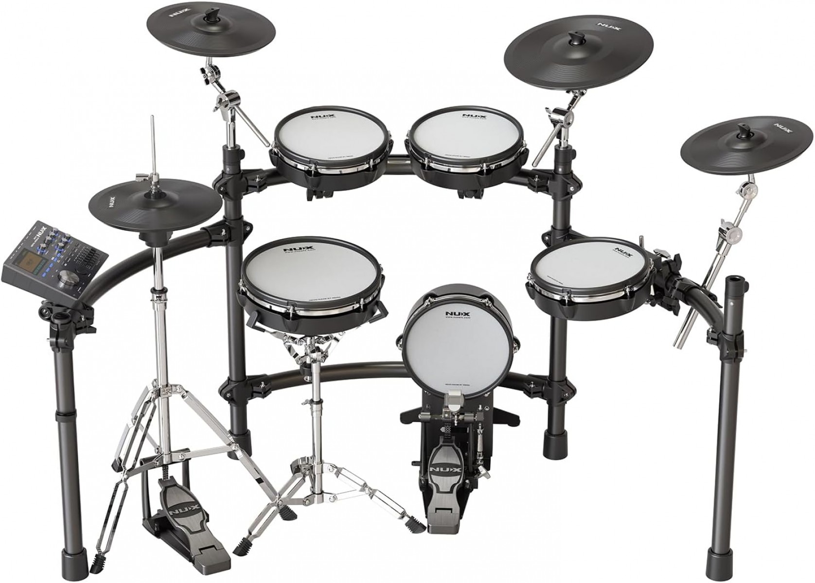NUX DM-8 DİJİTAL DAVUL SETİ (ÜST SEGMENT - PROFESYONEL ELEKTRONİK DAVUL) | BAĞIMSIZ Hİ-HAT STANDI, 12 İNÇ TRAMPET PEDİ, USB AUDIO KAYIT ÖZELLİĞİ, MODÜLER RACK SİSTEMİ | ÖLÇÜLER: PROFESYONEL SAHNE KURULUMU