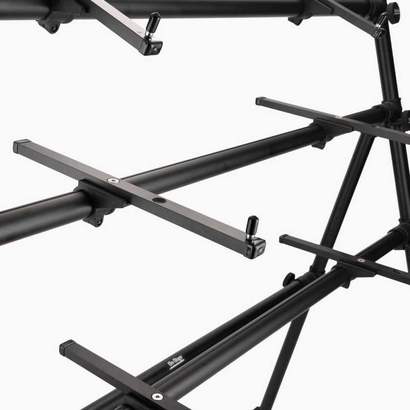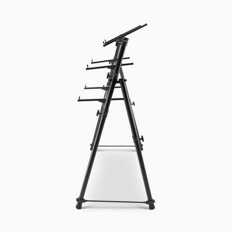 Maksimum 88 tuşlu klavyeleri taşıyabilecek şekilde tasarlanan bu 3'lü klavye standı, güçlü ve ergonomik yapısıyla hem ayakta hem de oturarak çalım kolaylığı sağlar. Dilediğiniz şekilde açıları ayarlayabilirsiniz.