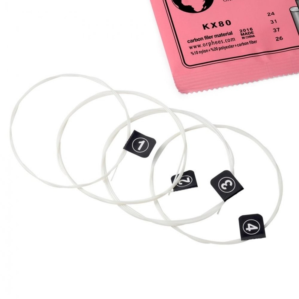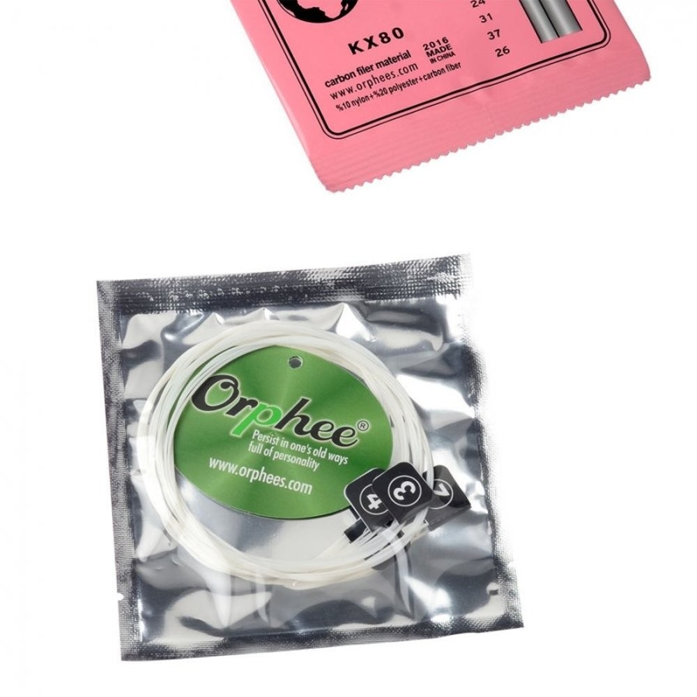 Orphee KX80 ukulele telleri, uzun ömürlü ve ukulele çalanların tercih ettiği uygun segmentli popüler tellerdir. Soprano ukulele tipleri için uygun tel takımıdır. Rahat çalım hissiyatı, hard tension, dolgun ve net ton! Bir pakette 4 tel bulunmaktadır! İç kısım naylon, polyester-karbon fiber malzeme; dış kısım ise karbon fiber malzemedir. Vakumlu poşette satılmaktadır.