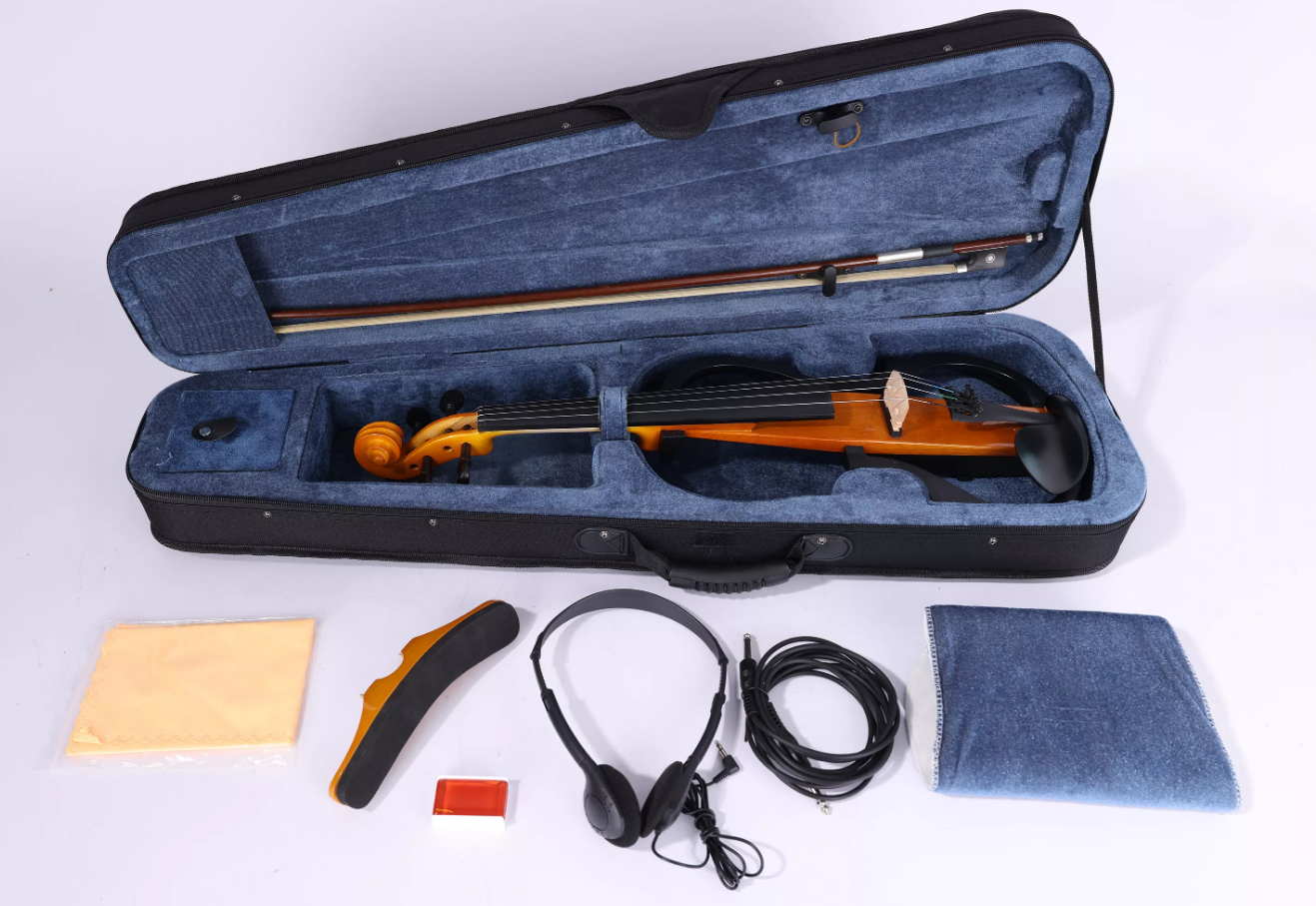 Picaldi VE120P 4/4 Tam Boy Elektro Keman - - - Abanoz klavye ve abanoz parçalar Karbon fiber kuyruk parçası - Köpük şekilli kasa ve abanoz kurbağalıÖğrenci Brezilya ağacı yayı Öğrenci reçinesi, köprü ve kulaklık dahil