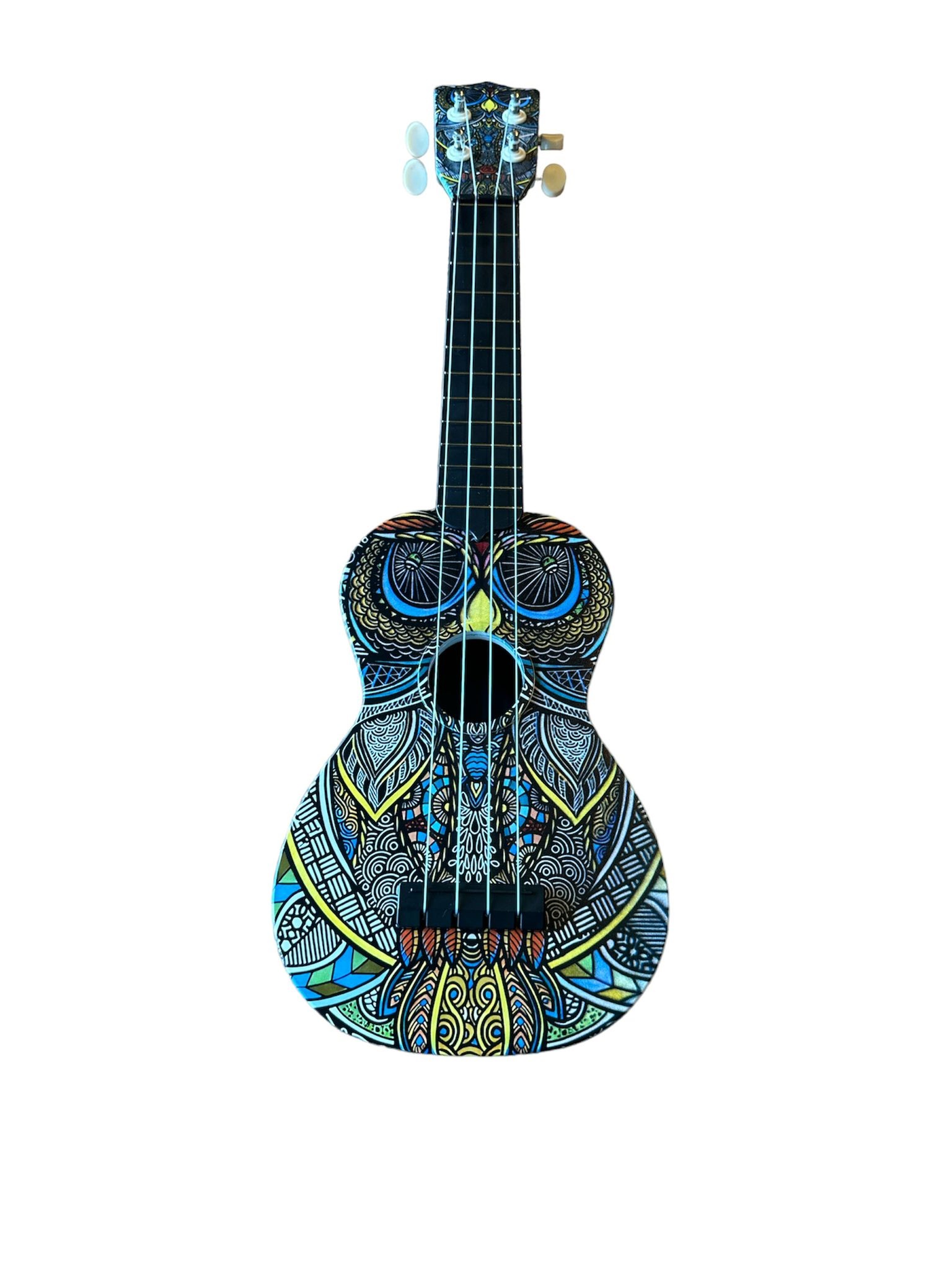 SEO Açıklaması: Hawaiian Baykuş Desenli Ukulele, tasarımıyla fark yaratmak isteyen müzisyenler için özel olarak üretilmiştir. Etnik desenleri ve parlak ada tınılarıyla hem çalanı hem de dinleyeni büyüler. Hafif ve dayanıklı yapısı ile seyahatlerinizde size en şık müzikal eşlikçi olur.