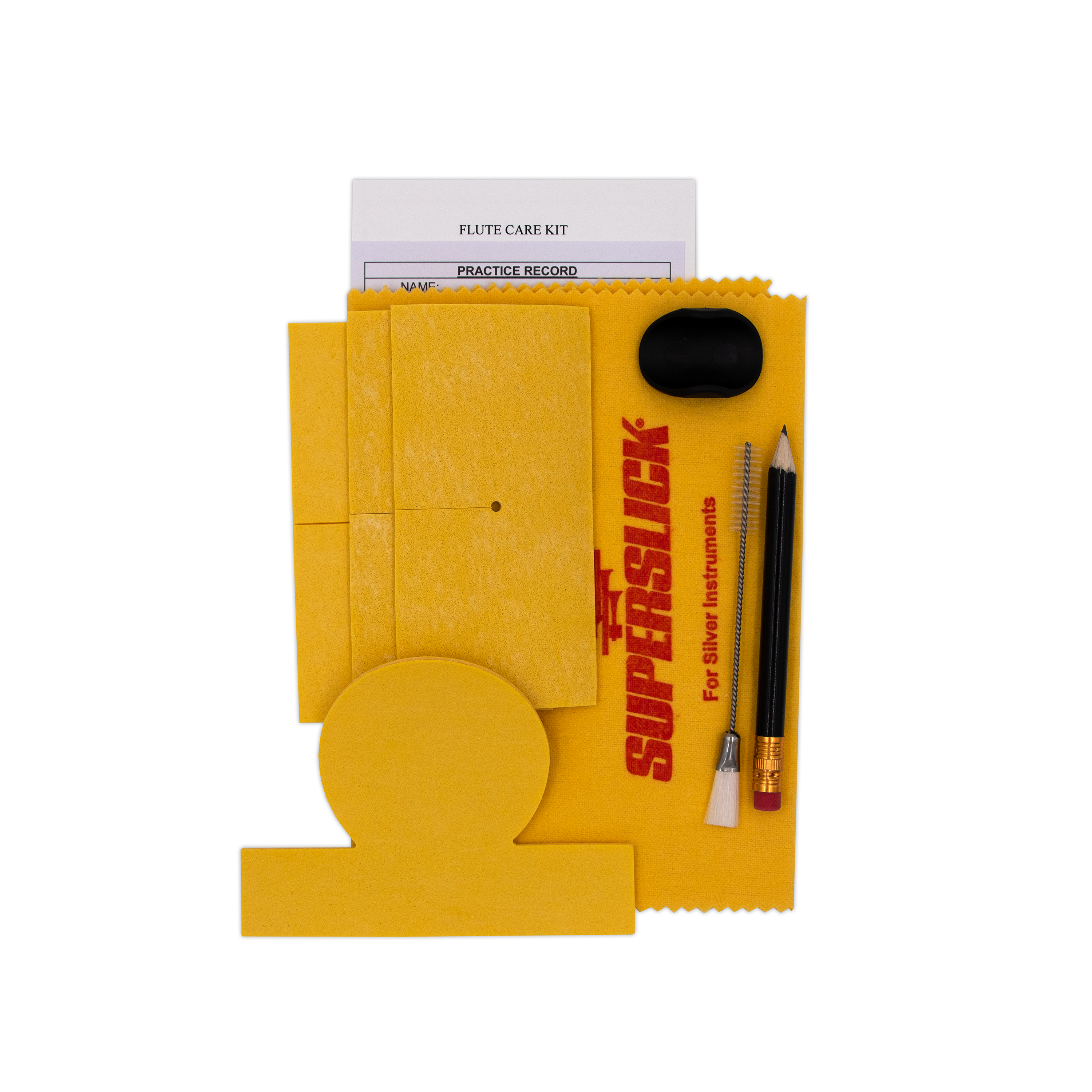Superslick Flüt Temizlik Seti FLCK4 - FLCK4 - Flüt Temizlik Malzemeleri - Arıtılmış Polonyalı Kumaş Superslick Key ve Rotor Yağı Flüt Başparmak Pozisyoner “HOOD” Baş Eklem Çubuğu 3 Flüt Swab Yamaları Çift Uçlu Silgi Fırçası Pratik Kayıt ve Kurşun Kalem Ba