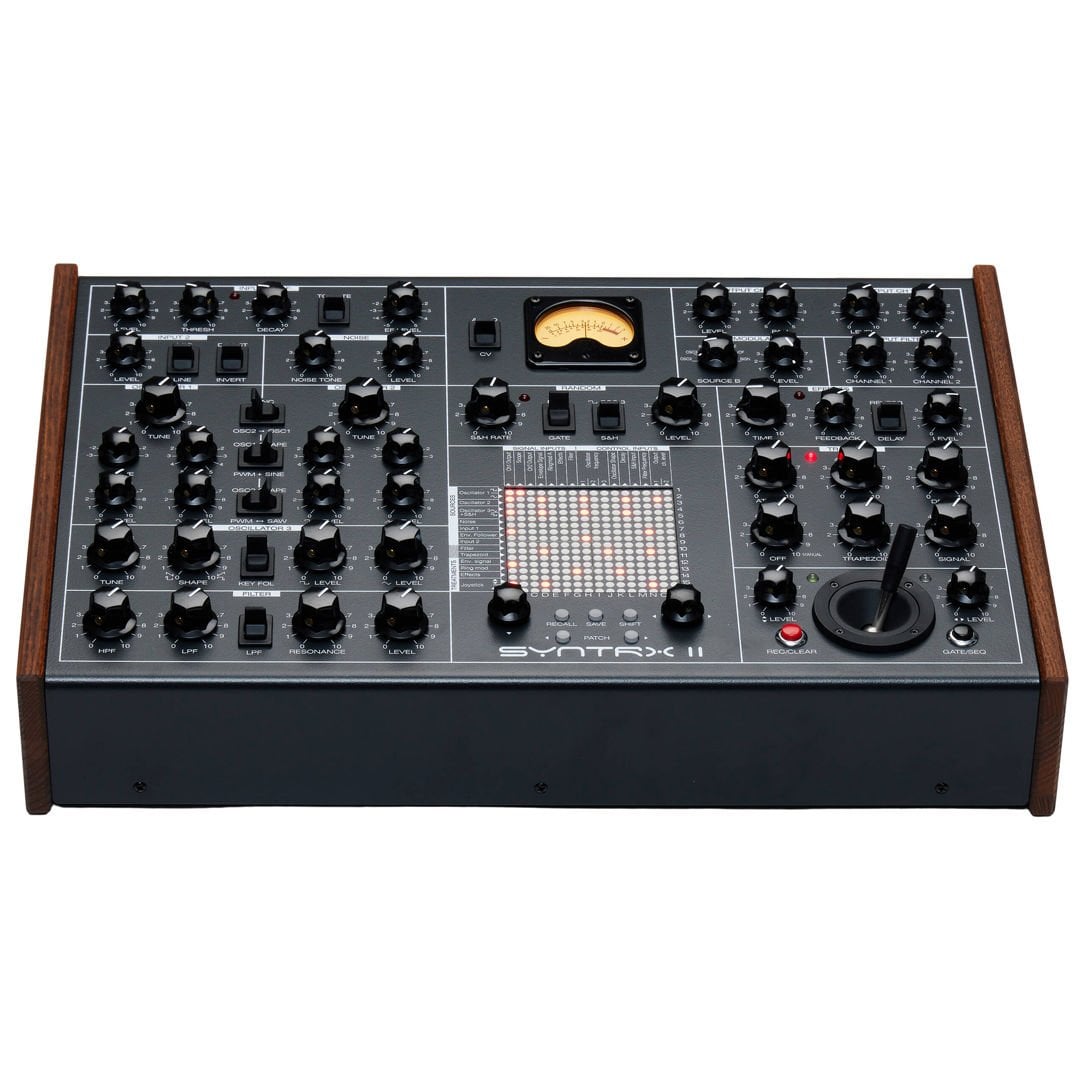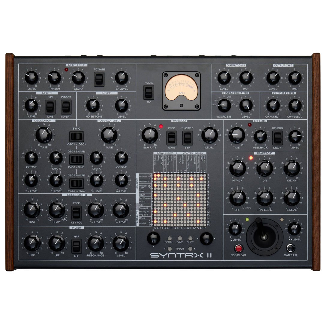 Masaüstü Analog Synthesizer, 3 VCO, VCF, Noise Generator, Arpeggiator S&H, Ring Mod, Joystick Kontrolü, 254 noktalı Patch Matrix, DIN5 MIDI Girişi ve MIDI ThruSYNTRX'ten öğrendiğimiz derslere dayanarak, çağdaş elektronik ve deneysel müzik kurulumlarına daha da derinlemesine entegre olacak ve ürkütücü dronlardan güçlü bas hatlarına ve parıltılı ses manzaralarına kadar sonik bölgeyi kapsayacak bir enstrüman yaratmaya karar verdik - SYNTRX II, deneysel sonik gezintiler için yeni bir karanlık at.SYNTRX II, analog ses tasarım devrelerimizin doruk noktasıdır - dalga şekillendiricili iki mükemmel kararlı ana osilatör, 1V/oct izlemeli bir modülasyon osilatörü, çok yönlü bir çok modlu filtre, bir zarf takipçisi ile süper şarjlı harici enstrüman girişleri, benzersiz, harika sesli bir halka modülatör, kaydedilebilir bir joystick, dahili piyano rulosu sıralayıcı ve kademeli modülasyon kaynakları, hepsi özel matris mikserimizin etrafında düzenlenmiş ve yeni DSP platformumuzdaki güçlü FX ile tamamlanmıştır.