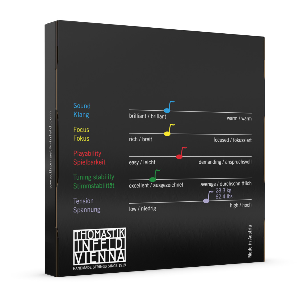 Spirocore viyola telleri, harika bir projeksiyona ve parlak tonlar ekleyen metalik bir bileşene sahip, canlı ve çok güçlü bir sese sahiptir.