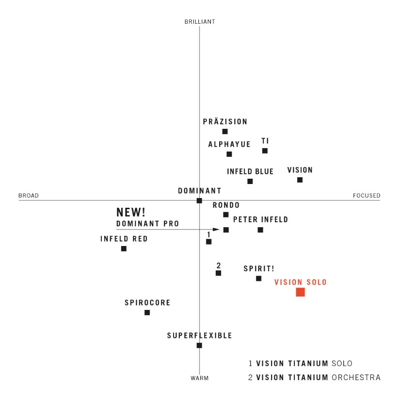 Vision Titanium Solo telleri, seslerindeki zengin ton spektrumu sayesinde canlı ve ışıltılı bir his ile doğrudan bir yay tepkisi sunar.